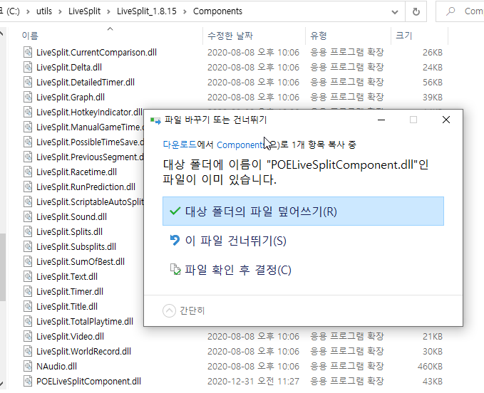 이제 올려놓은 파일(POELiveSplitComponent.dll)을 다운 받아