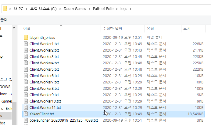 로그 파일 이름은 KakaoClient.txt 파일이다.
